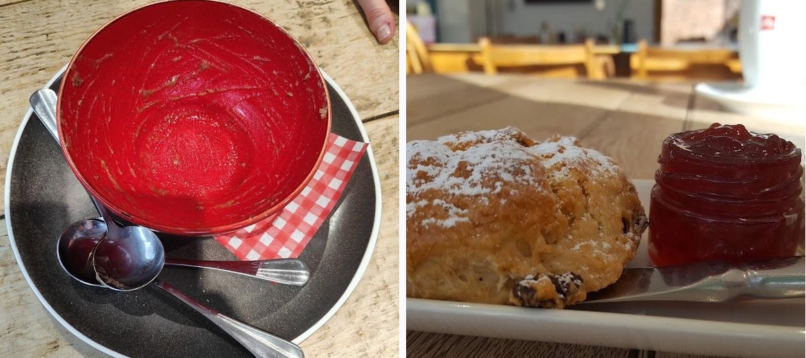 Best scone I’ve ever had. Everything we ordered was just lovely. The portion sizes were big but a takeaway box was no trouble. Staff were friendly and there were lots of table’s inside and outside. Very dog friendly, we like that. This was our second visit, the first was afternoon tea at Christmas then this time we ordered off the menu. Afternoon tea for two gift vouchers were available on nice printed card which I’ll be taking advantage of in the future 👍🏻